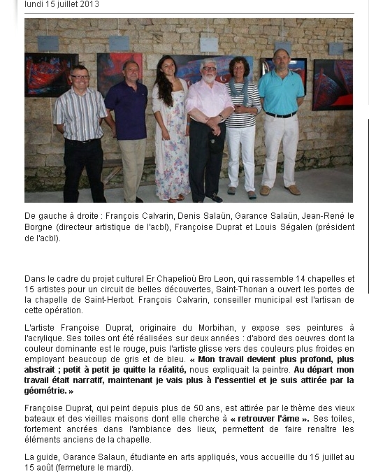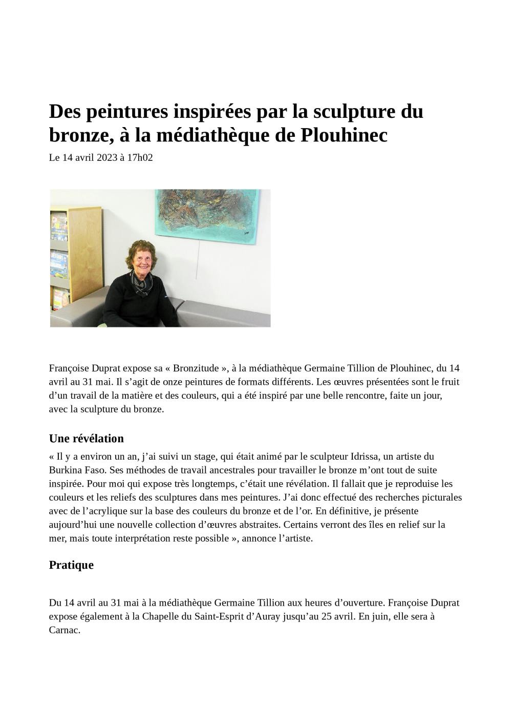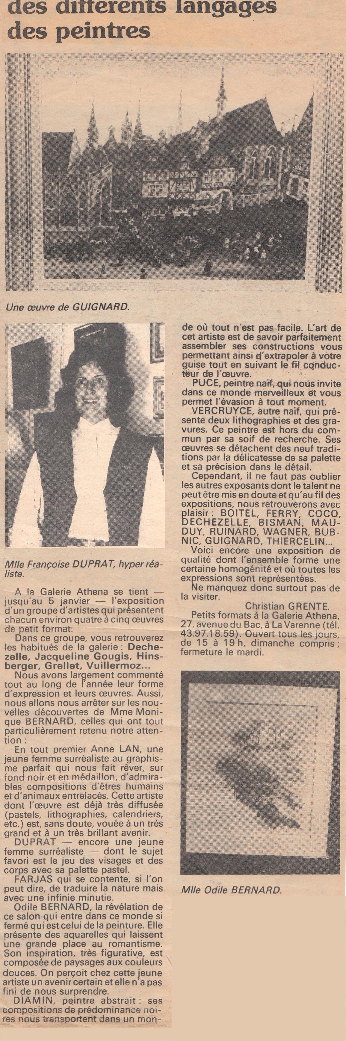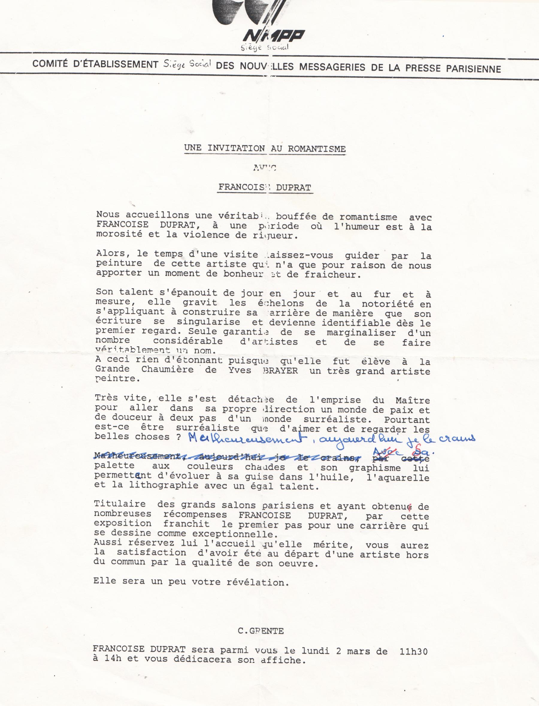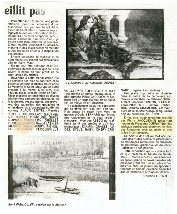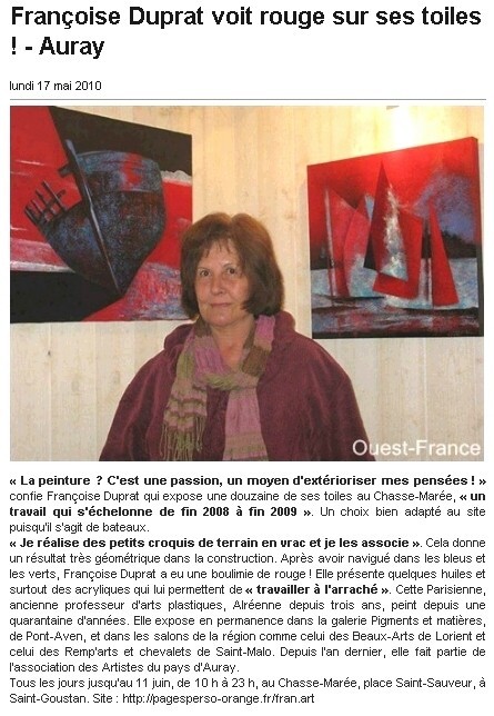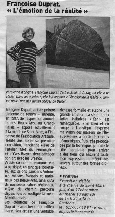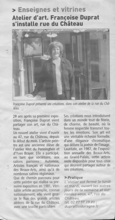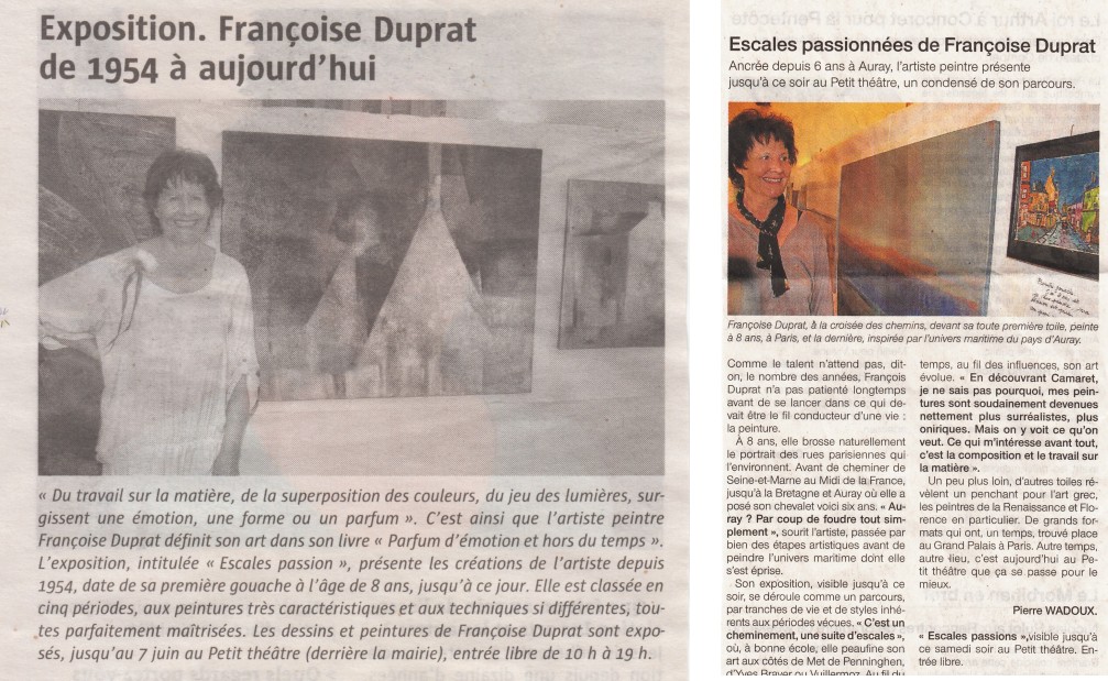 Archives et revues de presse Coupures de journaux, expositions, évènements, Françoise Duprat dans la presse.